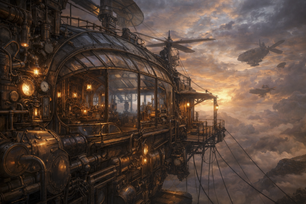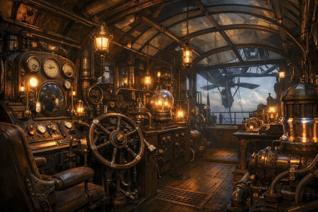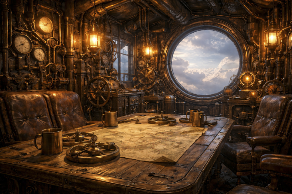 Portland Escape Rooms’ Steampunk Airship places players aboard a fantastical flying vessel inspired by classic steampunk aesthetics. Brass fittings, machinery, and mechanical details surround you as your team works to interact with the ship and accomplish your objective before time runs out.